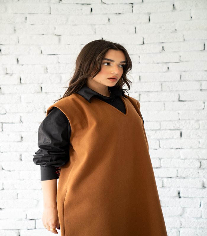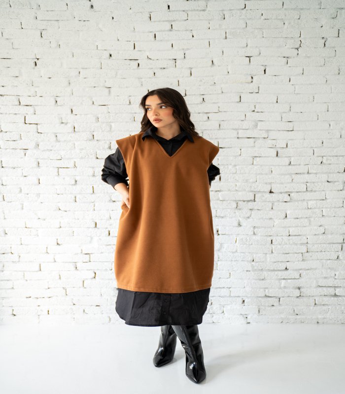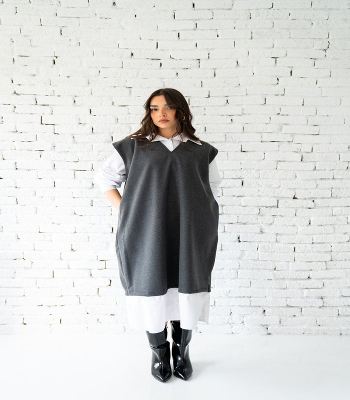 Wool vest in poplin. The shirt is attached. Gray and brown. Size 1 fits up to 80 kg. Size 2 fits up to approximately 100 kg. Price 1380 instead of 1850 for a limited time.